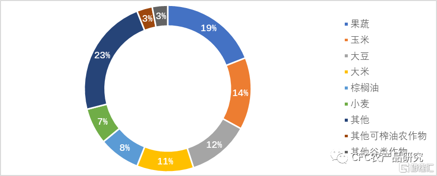 从钾肥下游农作物来看,禾谷类是主要的钾肥施用作物,玉米、大豆、稻米和小麦合计占比达到45%,蔬菜水果、糖类、油棕等经济作物及豆科作物也施用钾肥。