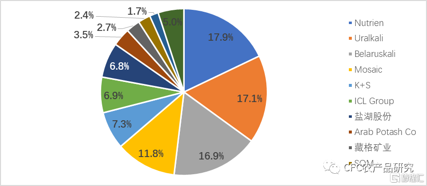 图:全球钾肥企业产能占比