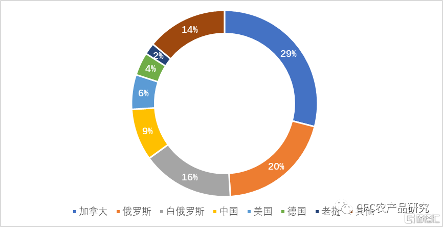 图:2020年全球钾盐储量分布